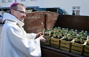 Velikonoční várce plzeňského piva na nádvoří pivovaru, stejně jako v minulých letech, slavnostně požehnal plzeňský biskup Tomáš Holub. Celkem 2026 lahví, symbolicky podle aktuálního roku, pak společně se zástupci pivovaru zapečetil v připravené dodávce a vypravil na cestu do Vatikánu.
